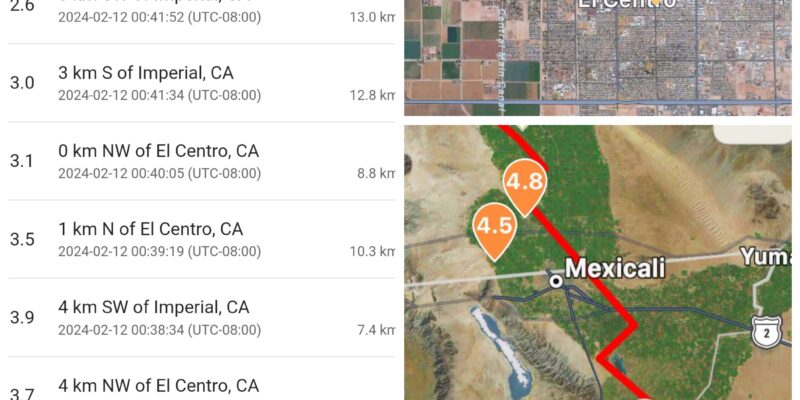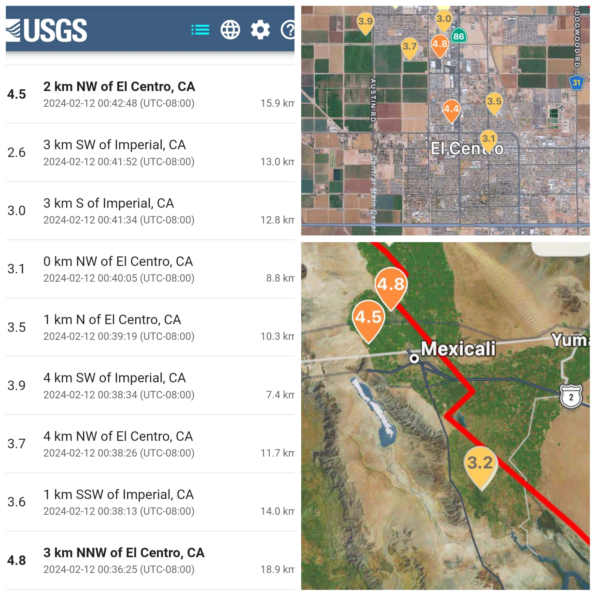 Un «enjambre» de sismos de mediana intensidad se registraron durante los primeros minutos de este lunes 12 de febrero en la capital del estado, Mexicali, los cuales se percibiendo hasta en la ciudad de Tecate y Tijuana y poblaciones de California, Estados Unidos.