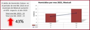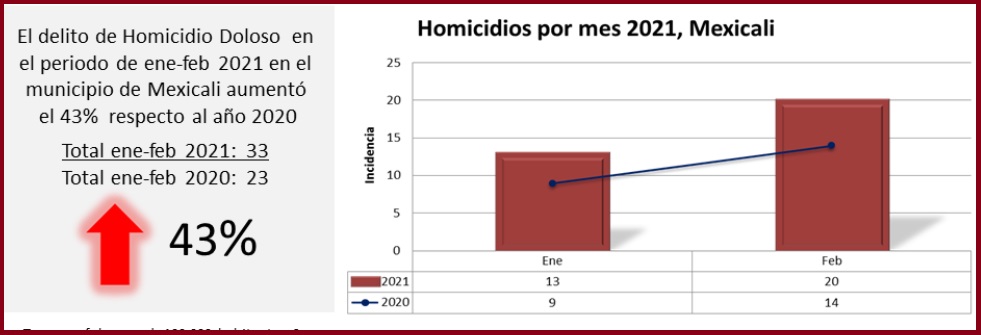De acuerdo a la página oficial del Consulado General de los Estados Unidos en Tijuana, los viajeros deben tener más precaución al viajar dentro y alrededor de Mexicali, el Valle de Mexicali, así como en la parte occidental del estado de Sonora debido a la posibilidad de una mayor violencia entre los rivales de los distinto cárteles.