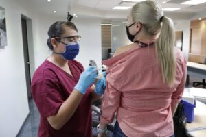 TIJUANA,BAJA CALIFORNIA, 14 noviembre 2021.- La campaña de vacunación contra la influenza, implementada por el XXIV Ayuntamiento de Tijuana, se ha desarrollado con gran éxito. Desde el pasado 02 de noviembre, fecha en que inició la aplicación de las dosis contra esta enfermedad en el módulo instalado en el Patio Central de Palacio Municipal, se han puesto 2 mil 700 vacunas a niñas, niños, adolescentes y adultos.