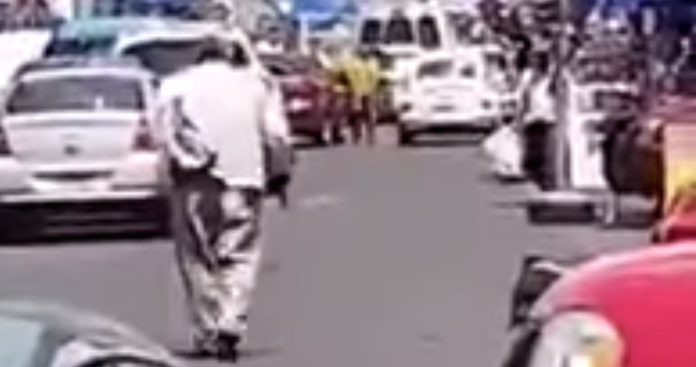 Un video difundido en redes sociales muestra a uno de los presuntos asaltantes en el suelo y moviéndose hasta que el hombre identificado como Silvano “R” se para frente a él, saca un arma y le dispara.