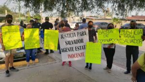 Justicia para Jesús Alberto, Leonardo David y Salvador, es lo que piden familiares y companeros policías de estod tres agentes estatales vinculados a proceso por el secuestro de un empresario mexicalense.