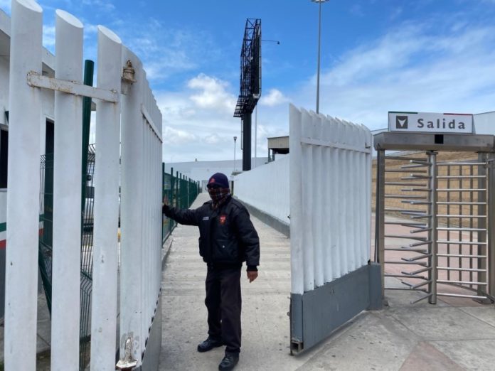 Cerrada por las restricciones del coronavirus, la plaza ahora vacía frente al paso fronterizo de El Chaparral parece abandonada – su soledad deja ver muros con grafiti, calles llenas de basura y aceras desmoronadas.U.S. Customs and Border Protection has made changes at ports of entry along the California-Mexico border, including the temporary closure of the PedWest pedestrian crossing. Closed because of coronavirus restrictions, the now-empty square in front of the