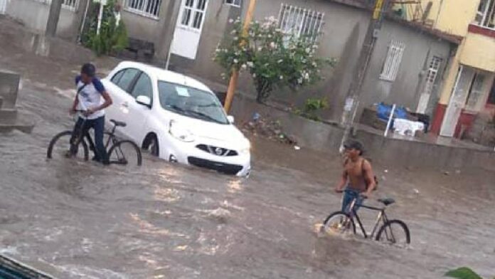 La localidad de San Isidro del Palmar, a unos cuantos kilómetros de la costa, fue anegada por el río Tonameca que atraviesa la ciudad.