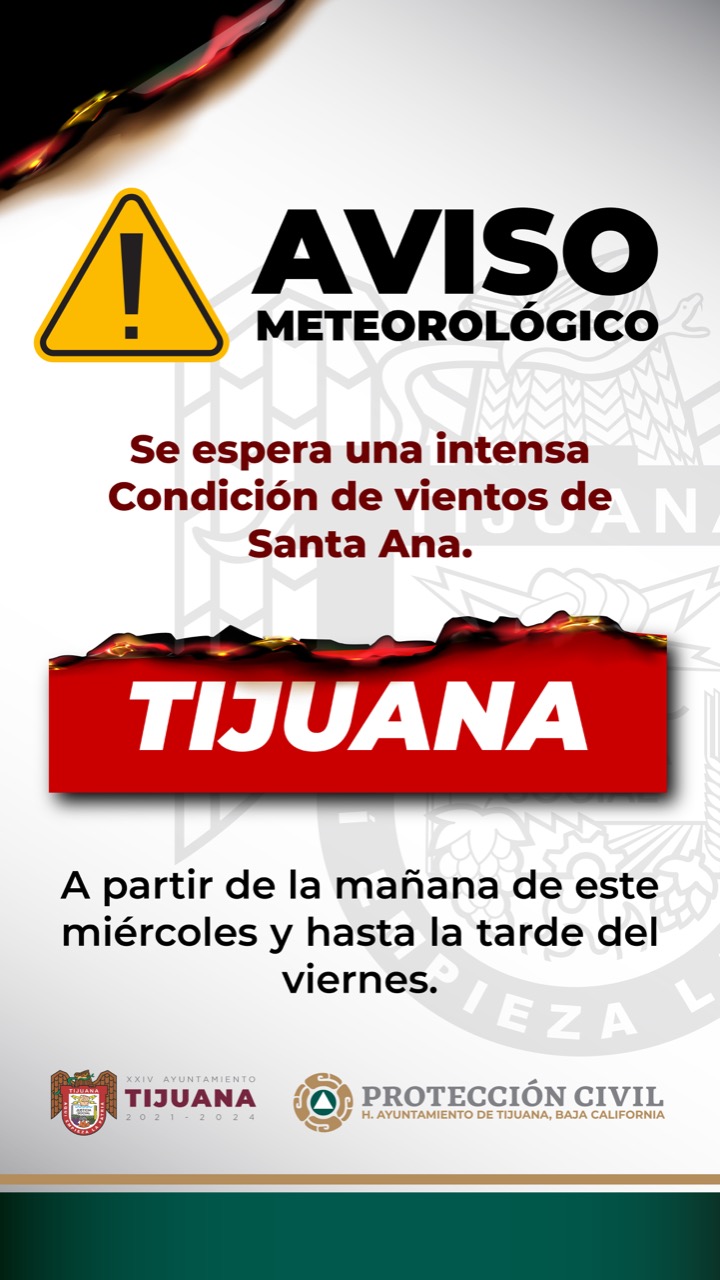 INFORME METEOROLÓGICO DE TIJUANA Y SU REGIÓN. Habrá vientos de Santa Ana