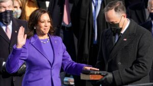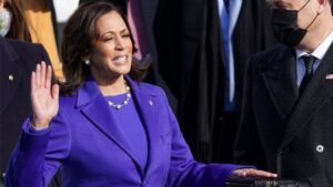 Kamala Harris se vistió de feminismo y unidad para hacer historia. La primera vicepresidenta de Estados Unidos llegó a las escalinatas del Capitolio protegida por un abrigo color morado, símbolo de la lucha por la igualdad de género y el color que se forma de la unión entre el azul demócrata y el rojo republicano. A las 11.40 de este miércoles, Harris rompía tres techos de cristal: se convertía en la primera mujer en jurar como número dos de la Casa Blanca, también en ser la primera persona negra y de origen asiático en lograr la vicepresidencia del país. Horas antes, publicó un vídeo en las redes donde agradecía su logro a “las mujeres que vinieron antes”.