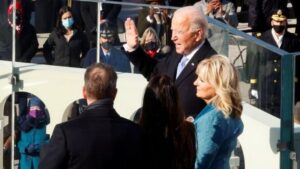 Biden asumió el cargo después de que lo hiciera su vicepresidenta Kamala Harris, la primera mujer en ocupar ese puesto, y a la que dedicó también unas palabras en su discurso de investidura.