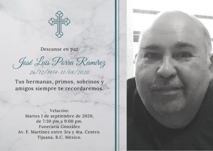 El fin de semana falleció el compañero, José Luis Porra Ramírez. SUS RESTOS SERÁN VELADOS LA NOCHE DE ESTE MARTES 1o. de Septiembre en la funeraria Gonzalez, ubicada en el centro de Tijuana.
