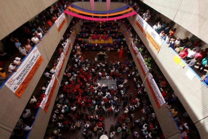MAESTROS MANTIENEN PLANTÓN EN CENTRO DE GOBIERNO