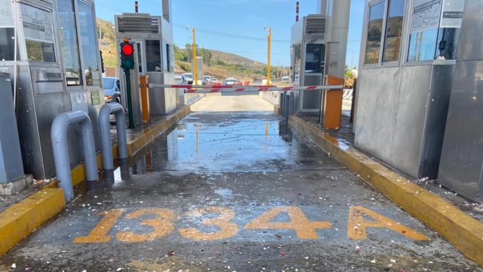 Este domingo, integrantes del Grupo Angeles  lanzados decenas de huevos podridos a elementos de la Guardia  Nacional   que vigilan  a la caseta número 5 del edifico de cuota de la carretera escénica Tijuana-Ensenada, en donde exigen se libere para que no se cobre cuota de peaje por parte de Caminos y Puentes de Federales de Ingresos(CAPUFE)