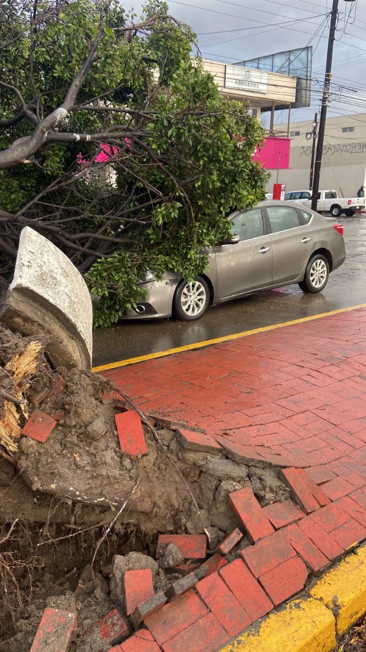 En el bulevar Díaz Ordaz, entre la Ermita de avenida de Los Charros, arrancó y tiró  árboles que al derrumbarse afectó varios vehículos.