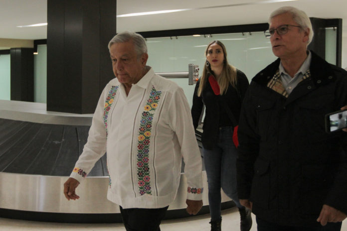 TIJUANA,BAJA CALIFORNIA,27 marzo 2020/- Andrés Manuel López Obrador,presidente de México llegó el viernes al aeropuerto de Tijuana donde fue recibido por el gobernador de Baja California, Jaime Bonilla.