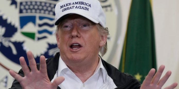 Vestido con una chaqueta deportiva y una gorra blanca con su consigna de campaña «Make America Great Again» (Que Estados Unidos sea grande otra vez) Trump defendió que con una barrera se salvarían vidas y se combatiría el tráfico irregular.