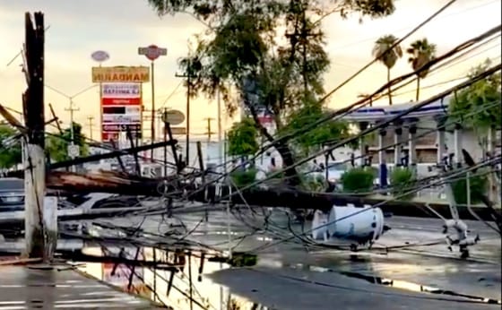 LLUVIA Y VIENTOS EN MEXICALI DERRIBAN POSTES DE LUZ