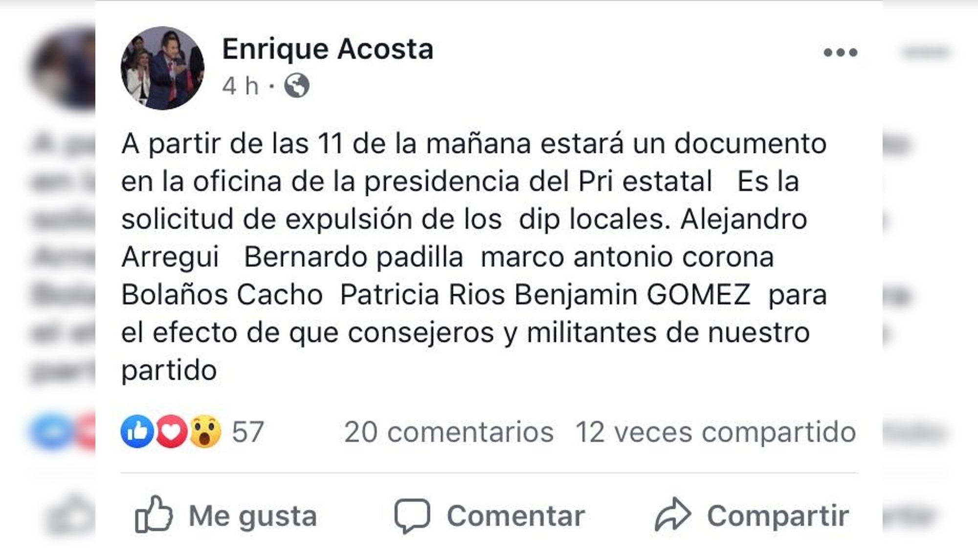 Se acusó por parte de algunos, al ex candidato a gobernador de ese partido, Enrique Acosta Fregoso, de haber sido quien ordenó estas carteleras, sobre todo porque recientemente salió de manera pública en sus redes para denostar a los mismos legisladores priístas.