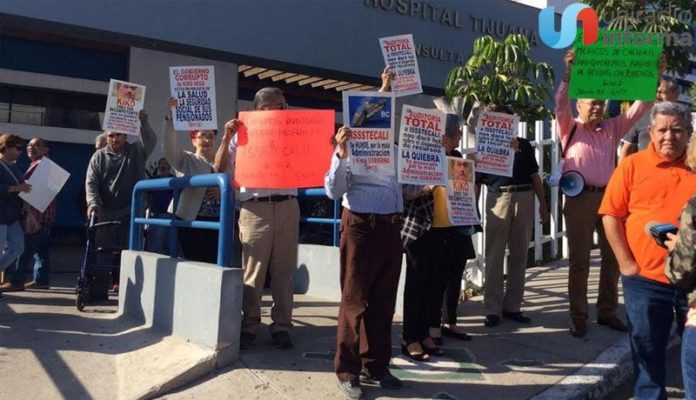 TIJUANA,BAJA CALIFORNIA,15 octubre 2019/.- Maestros del Sindicato Nacional de Trabajadores de la Educación(SNTE) sección 37, se manifestaron en ISSSTECALI, MIRADOR, ante el atraso en sus pagos, además de un lamentable servicio de salud que los priva de sus usuales medicamentos.