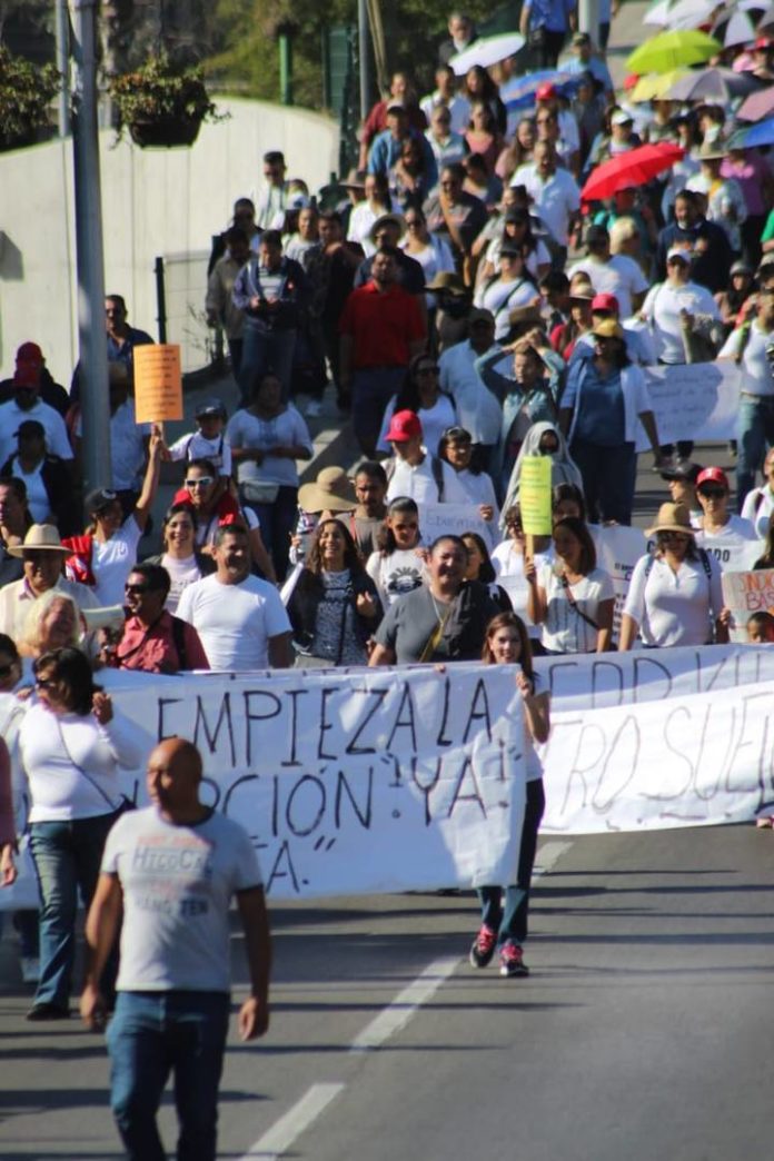 Maestros marcharon desde la zona centro de Tijuana hasta el palacio de gobierno estatal, la mañana de este lunes , gritando consiganas contra el gobernador del estado,Francisco Vega de la Madrid.
