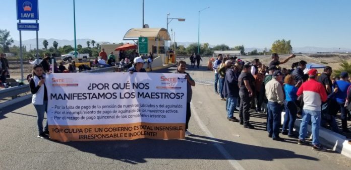 Mexicali, BAJA CALIFORNIA,13 de diciembre 2018/.-Maestros de Baja California bloquearon la carretera Mexicali-Tijuana (a la altura de la Delegación Progreso) y liberaron las casetas de peaje de todo el Estado y la de San Luis Rio Colorado, Sonora.