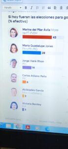 MARINA DEL PILAR 43%, JONES 28%, HANK 14 %. Encuesta del periódico El Financiero. Elecciones 6 Junio 2021