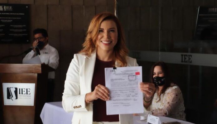 Marina del Pilar Ávila Olmeda se registró ante el Instituto Estatal Electoral (IEEBC) como candidata a la gubernatura de Baja California, por la coalición Morena, el Partido Verde y Del Partido del Trabajo.