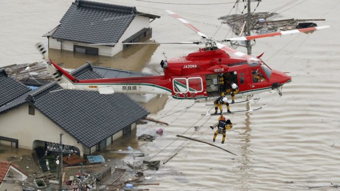 Las inundaciones y deslizamientos de tierra provocados por lluvias torrenciales en el occidente de Japón dejaron al menos 100 personas muertas y 58 desaparecidas, indicaron medios locales.