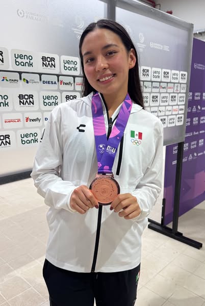 ASUNCIÓN,PARAGUAY, 12 AGOSTO 2025.-La nadadora bajacaliforniana Sharon Guerrero, entrenada por Aarón Fernández, conquistó la medalla de bronce en los 800 metros libres de los Juegos Panamericanos Junior Asunción 2025, registrando un tiempo de 8:49.46.