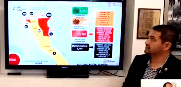 Alonso Pérez Rico, Secretario del Sector Salud, manifiesto que en Mexicali se sumaron 210 casos positivos en ese mismo reporte, es decir que la capital del estado tiene ya 5,850 confirmaciones de contagios, mientras que en todo el estado suman 10,765.