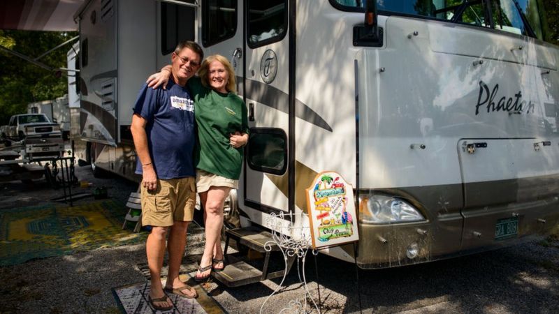 En su viaje continuo, estos nómadas modernos intercalan épocas de ocio con empleos temporales, ya sea limpiando campamentos, ayudando en la cosecha, haciendo sustituciones o como personal adicional en las campañas de Navidad de gigantes como Amazon o J.C. Penney.