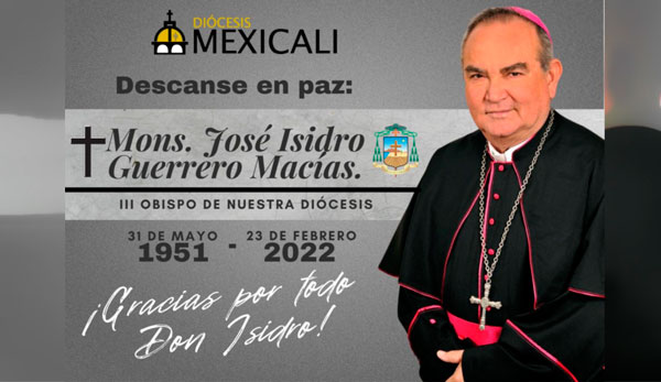 Fue durante la mañana del miércoles 23 de febrero de 2022 cuando la Diócesis de Mexicali confirmó la noticia del fallecimiento de José Isidro Guerrero Macías, que durante 25 años sirvió como Obispo de Mexicali.