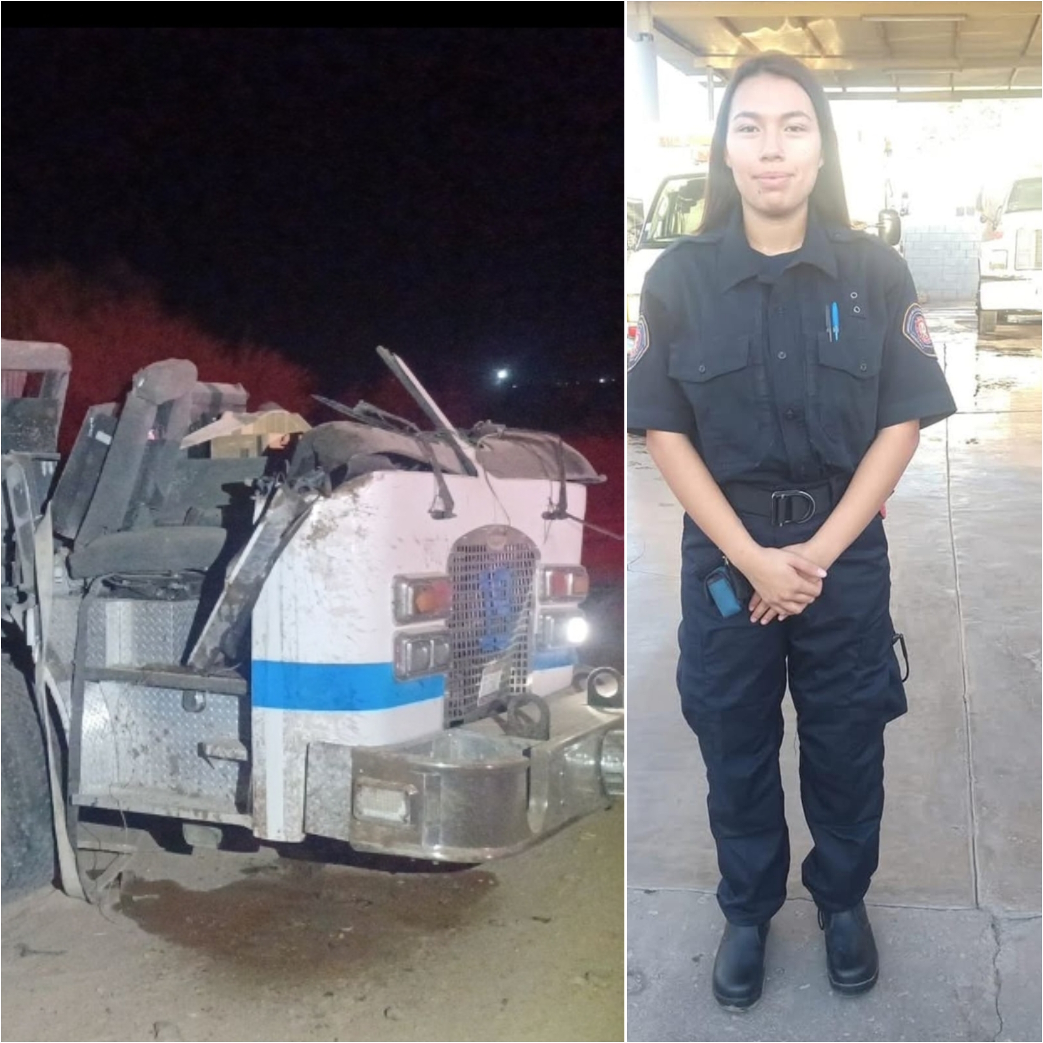 La bombera Melisa Galván falleció tras volcarse la máquina extintora de la Dirección de Bomberos en la carretera a Los Algodones cuando se dirigían a auxiliar al conductor de un tractocamión.