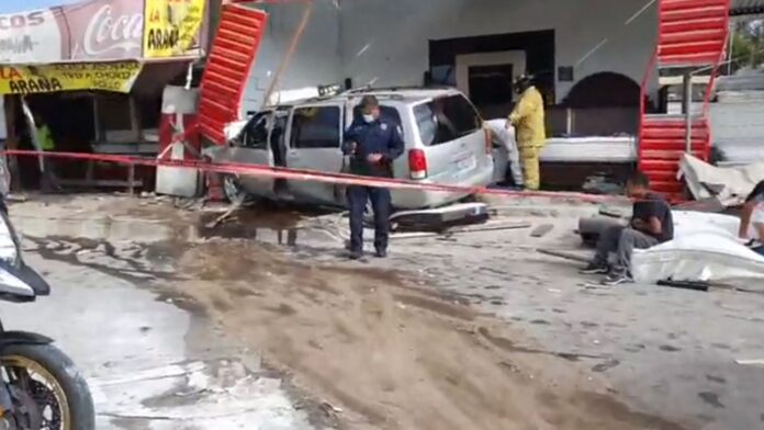 PLAYAS DE ROSARITO BAJA CALIFORNIA, 21 DE OCTUBRE DE 2020- Una mujer impacto su vehículo tipo caravaN contra una negociación denominada «la araña»,al filo de las 14 horas del miércoles , en la carretera Rosarito rumbo a Tijuana, en Plan Libertador, donde una niña perdió la vida.