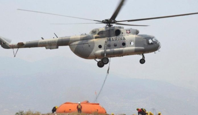 De acuerdo con la dependencia, la aeronave transportaba un “helibalde con capacidad de 2,500 litros” para combatir un incendio forestal en el estado.