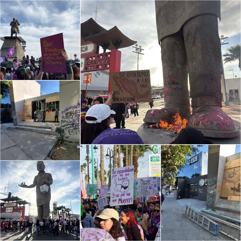 Por otra parte, en Tijuana, denominado #BloqueNegro intervino con pintas y destrozos en vidrios y parte de la estructura de las instalaciones de la Fiscalía General del Estado.