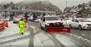 Las autoridades de FIARUM y CAPUFE informaron hace unos momentos que la autopista en los tramos de La Rumorosa y El Hongo fueron abiertas tras más de 24 horas de estar cerradas por la fuerte nevada que cayó en esta zona serrana de Tecate.