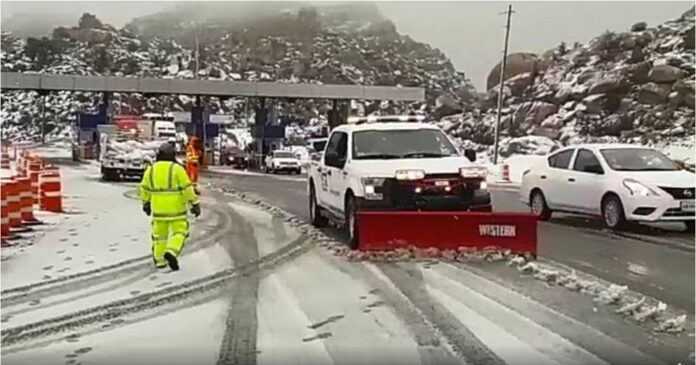 Las autoridades de FIARUM y CAPUFE informaron hace unos momentos que la autopista en los tramos de La Rumorosa y El Hongo fueron abiertas tras más de 24 horas de estar cerradas por la fuerte nevada que cayó en esta zona serrana de Tecate.