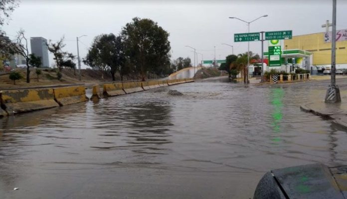En el Distrito Playas de Tijuana, se reporta un enorme encharcamiento de aguas pluviales en el Libramiento Rosas Magallón y la Calle Segunda.