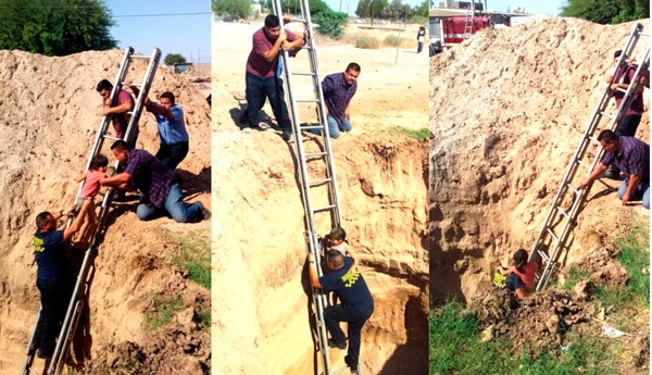 Eran las 09:40 de la mañana del lunes cuando llegó el llamado a los Bomberos Tecolotes, por lo que el capitán Francisco Salcido, Ernesto de la Cruz, José Valeriano y Luis Gerardo Ramírez, acudieron al lugar ubicado en el ejido Piedras Negras en el Valle de Mexicali, donde fueron recibidos por los moradores quienes les señalaron una gran horadación que sería una fosa séptica.