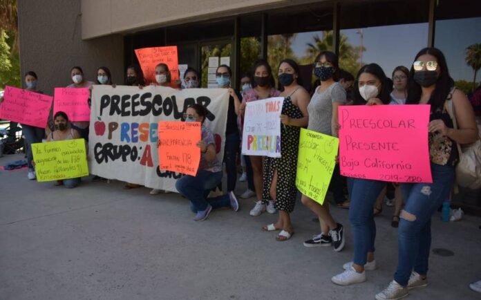 Maestras de nivel preescolar se manifestaron en Sistema Educativo del gobierno del estado en Mexicali ya que asegurana que aunque aprobaron en las evaluaciones para plazas, no se las han asignado.