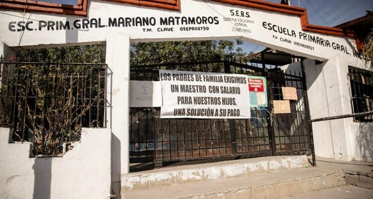 Padres de familia apoyan a maestro de primaria que no ha recibido su sueldo.Toman escuela General Mariano Matamoros