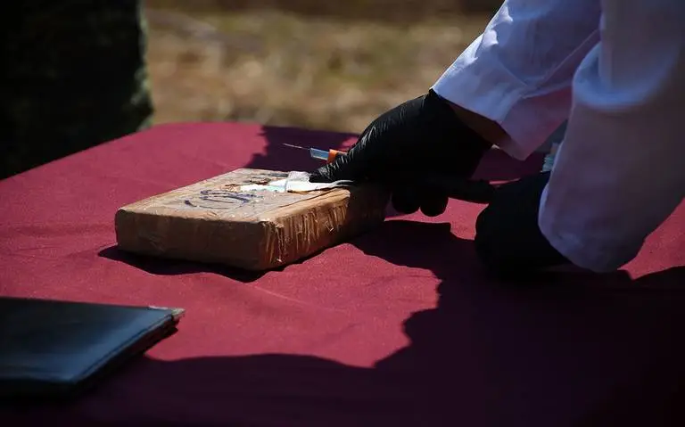En la búsqueda física, los oficiales localizaron paquetes envueltos con cinta adhesiva gris, papel aluminio, dentro de los asientos del vehículo, así como en los paneles de las puertas de la camioneta, dando un total de 92 libras, esto es casi 42 kilogramos de cocaína.