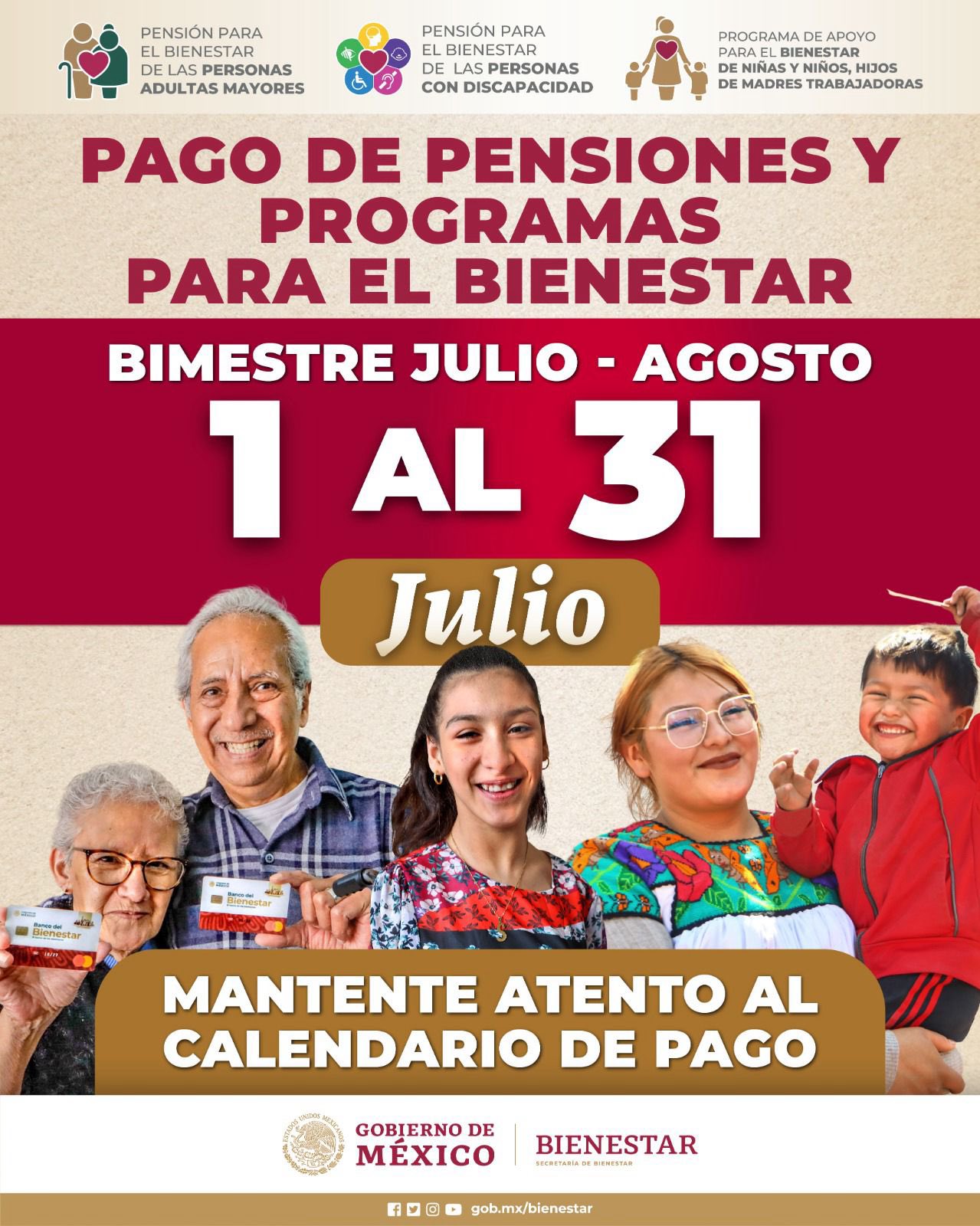 Pensión Bienestar se pagará del 1o.al 31 de julio 2024