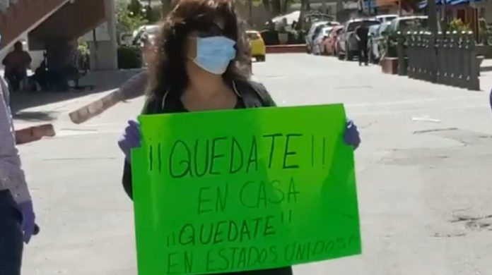 Sostenían letreros que decían “Quédate en casa” y “Exigimos el cierre de la frontera”, las personas que asistieron bloqueando temporalmente la garita de Nogales, la principal entrada desde Arizona hacia México, así lo reportó.
