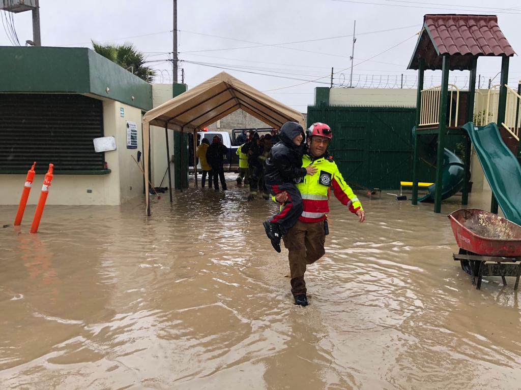 REPORTE POR LLUVIA EN TIJUANA. Ordenan suspenden clases escolares el martes. Rescatan a alumnos de escuela en Cañón del Padre