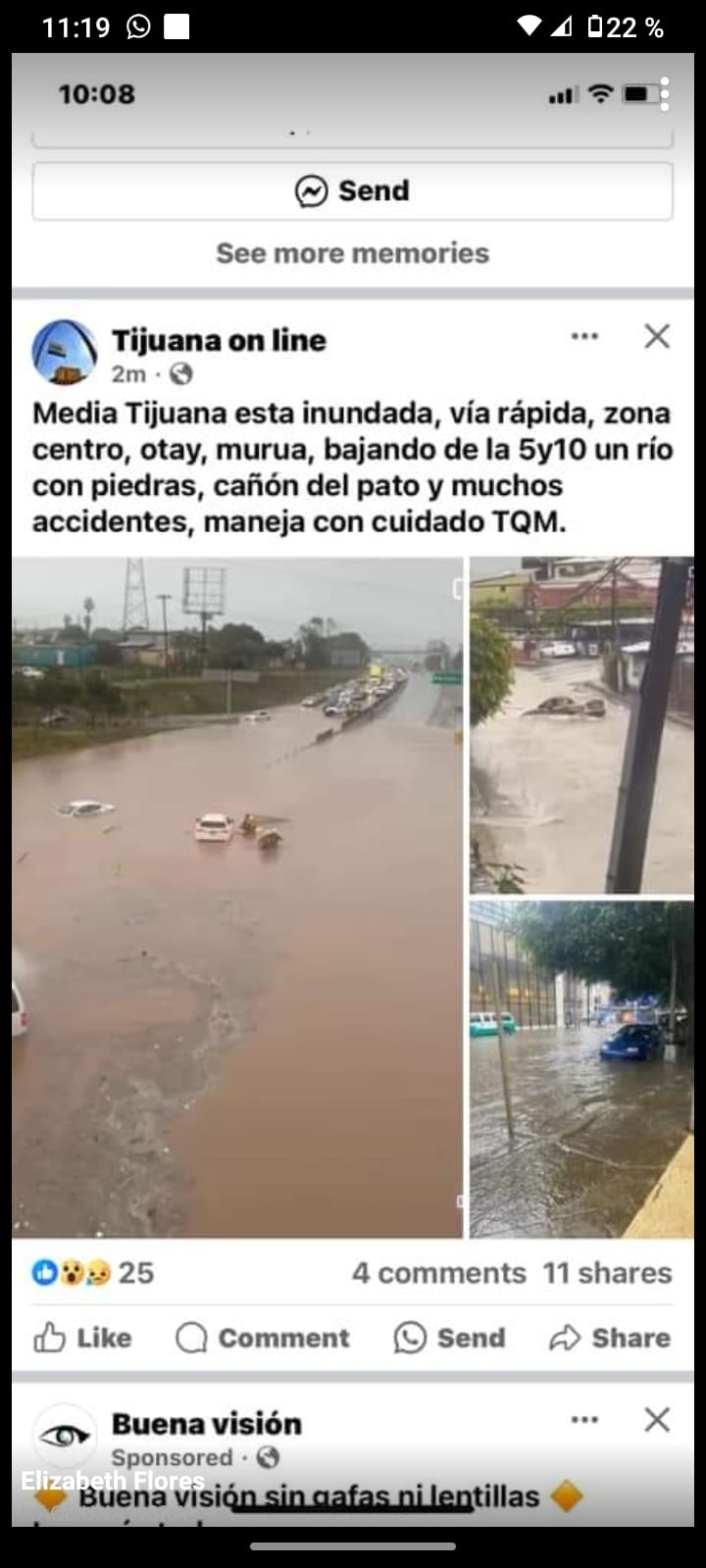 Comercios de zona río Tijuana, inundados .Videos en Facebook