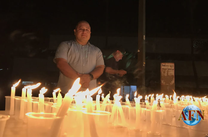 A manera simbólica, los manifestantes encendieron veladoras ante las oficinas centrales de CFE en pleno día del muerto, en protesta de que «están matando a los comercios restauranteros».