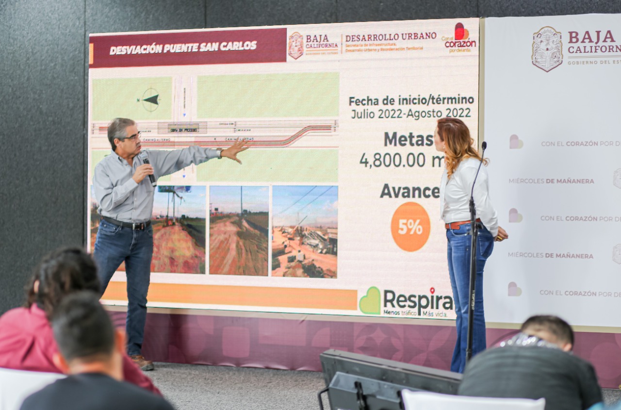 Por otro lado, la Gobernadora informó que, en el denominado «Tramo de la Muerte», la Secretaría de Infraestructura, Desarrollo Urbano y Reordenación Territorial (SIDURT) está construyendo una ruta de desvío a la altura del Puente San Carlos en el tramo Chapultepec-Maneadero. La meta es concluir cuatro mil 800 metros cuadrados de camino en el mes de agosto.