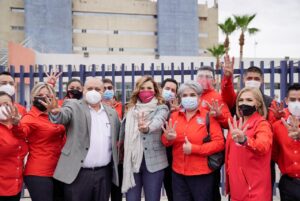 Frente el Hospital General de Mexicali (HGM), y en presencia de personal de salud en general, Marina del Pilar sostuvo que la pandemia de Covid-19 significa “un nuevo paradigma en la salud pública, el comportamiento social y el desarrollo futuro”, lo que conducirá a nuevas maneras de relacionarnos, y de ejecutar las políticas sanitarias.