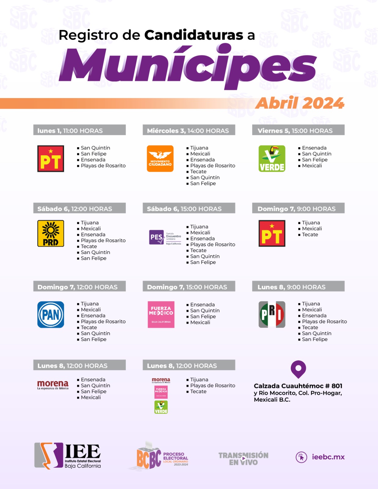 La dirigente estatal informó que Jaime Navarro, Ana Ferreiro fueron designados para disputar las alcaldías de Mexicali y Tecate, respectivamente; Fernando Serrano y Estela Cárdenas, las de Rosarito y Ensenada; en tanto que Enrique Flores y Maritza del Villar, las de San Quintín y San Felipe.