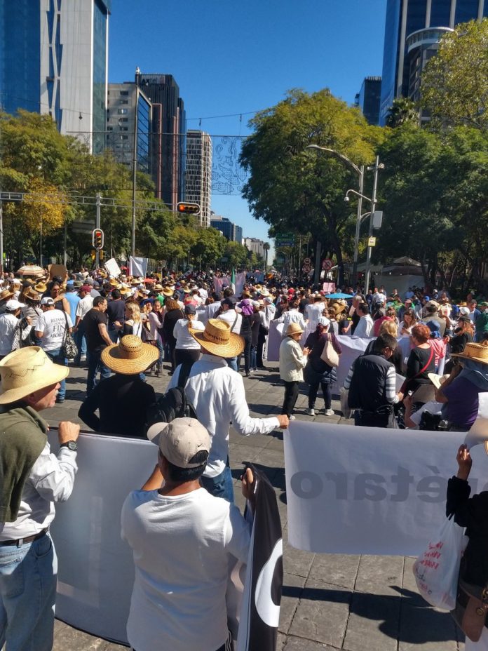 Luego de partir de la columna de la Independencia, luego de las 11:00 horas, la manifestación arribó casi al mediodía al monumento a la Revolución, donde María Elena Herrejón, a la cabeza de la movilización y dirigente de Movimiento Pro-Vecino, A. C., manifestó su desconfianza por los señalamientos de López Obrador de que No nos va a fallar, pero “qué creen -indicó-, nos falla”.