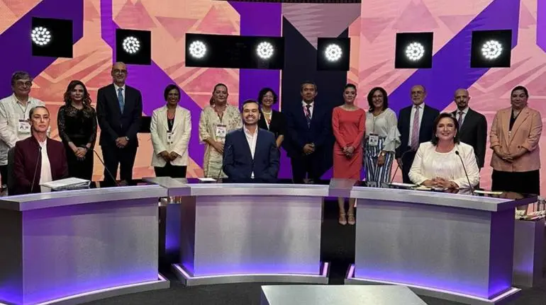 8:23 Claudia Sheinbaum pide analizar problemas con el reloj que indica el tiempo de intervención de cada candidato.
