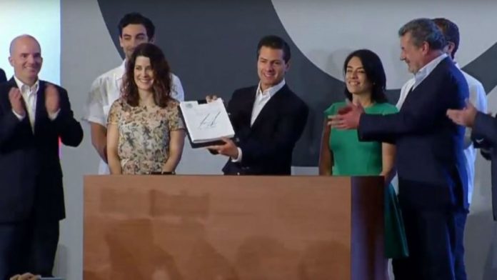 Previo a su mensaje inaugural del encuentro, el mandatario firmó el documento para que entre en vigor la también conocida como Ley Fintech.